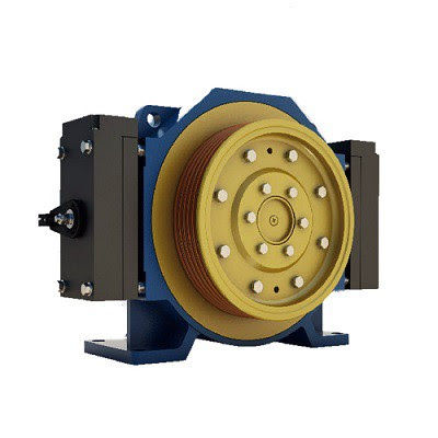 Động cơ thang máy là bộ phận quan trọng nhất, đóng vai trò dẫn động cho hộp giảm tốc theo một vận tốc nhất định. Động cơ chính là điểm trung chuyển giữa cabin và đối trọng thông qua hệ thống puly ma sát trên motor và các puly chuyển hướng khác.