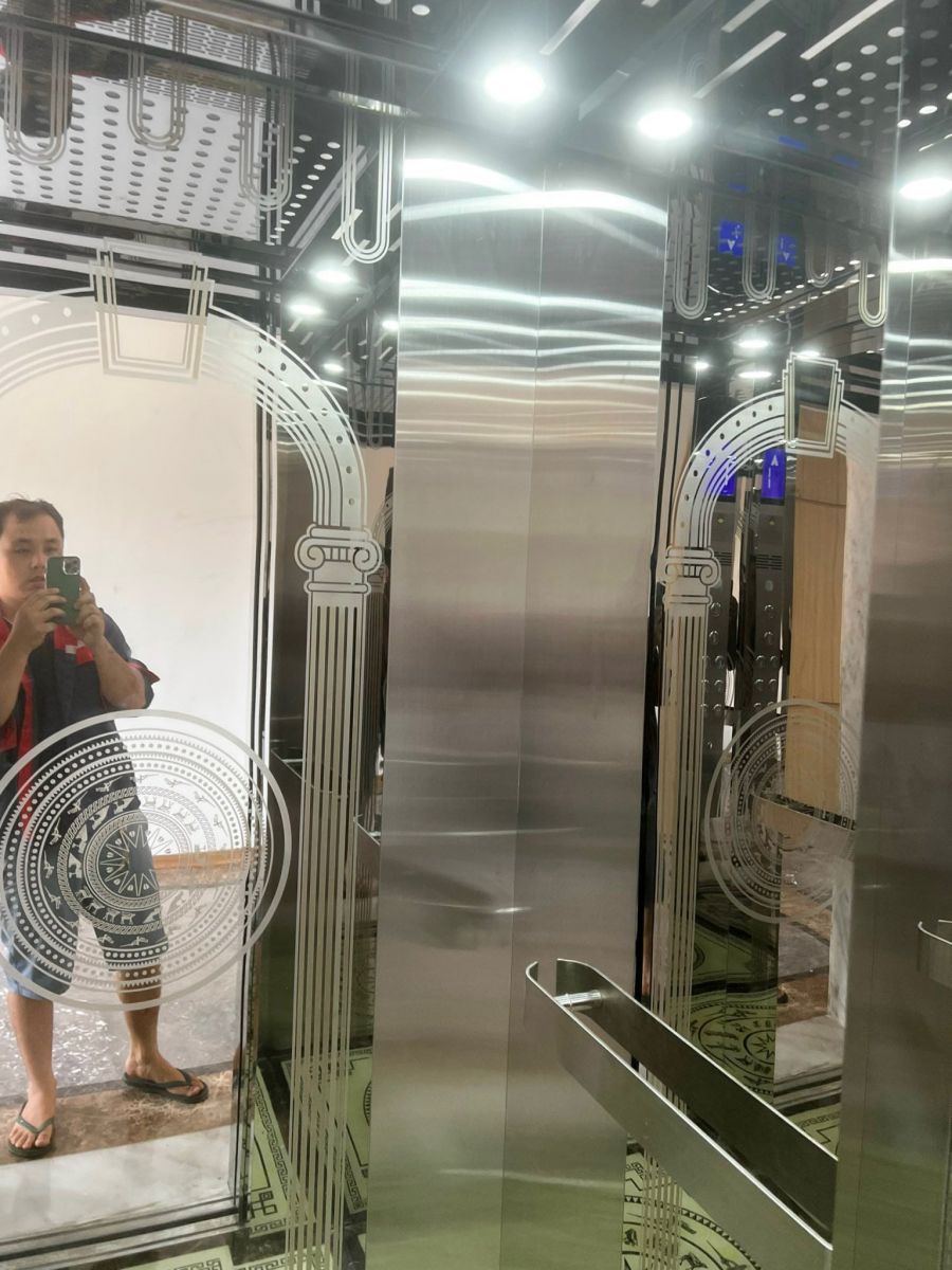 Cấu hình thang máy Inox gương vàng hoa văn. Lắp đặt trọn gói Bảo hành 24/7 Tư vấn, thiết kế miễn phí