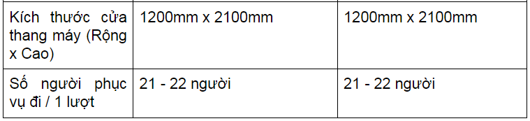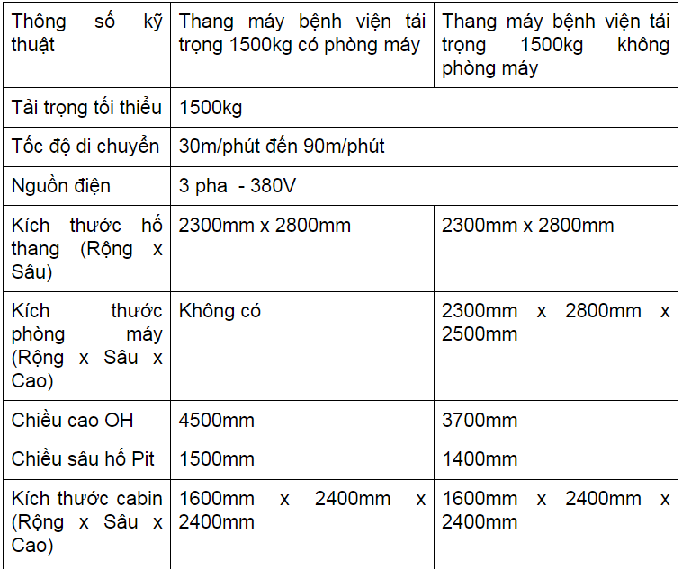 Thông số kỹ thuật thang máy bệnh viện tải trọng 1500kg