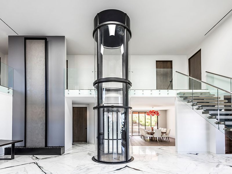 Thang máy không hố pit thường sử dụng cửa kính trong suốt giúp mở rộng không gian và tạo cảm giác thông thoáng.